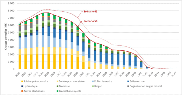 En 2016, face à une nouvelle augmentation de la CSPE d’un montant estimé de 7 milliards d’€ (soit +17% par rapport à 2014), en grande partie due au développement de l’éolien et du solaire[2] selon la CRE, le soutien étatique aux ENRi a été scindé en deux. Une partie reste payée par le consommateur (c’est la CSPE renommée accise en 2025) et qui a été plafonnée, le complément est financé directement par le budget de l’État[3], c’est-à-dire le contribuable.