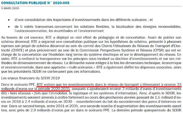 Notons que RTE, pour conforter sa demande de 100 Md€ affirme que l’Allemagne prévoit dans les 10 ans à venir un investissement réseaux de plus de 250 Md€ et la Grande Bretagne plus de 150 Md€.
